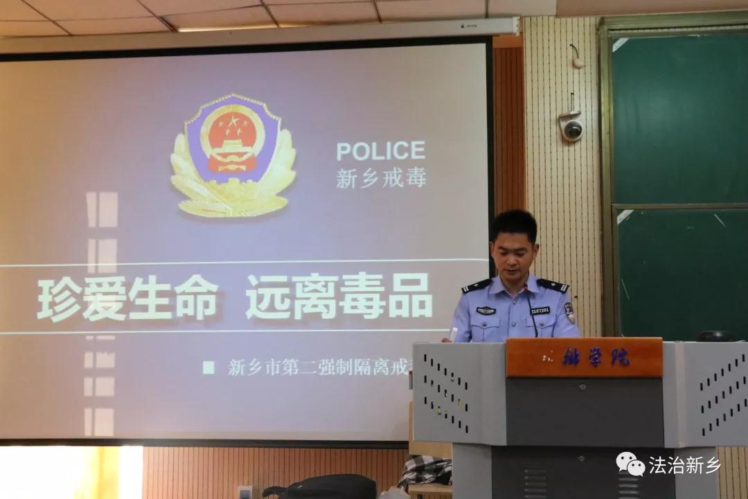 为了让即将走出校园的莘莘学子远离毒品,让青春不因沾“毒”而折翅。在“6.26”国际禁毒日到来之际,新乡市第二强制隔离戒毒所的民警和戒毒学员走进新乡学院,为大学生上了一堂生动的禁毒戒毒公开课。戒毒民警的现场讲解和两名戒毒学员的现身说法,让正值青春的大学生灵魂深处受到震撼,纷纷表示要远离毒品,珍爱生命。