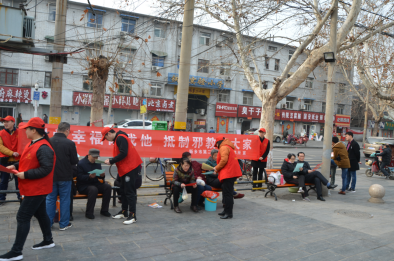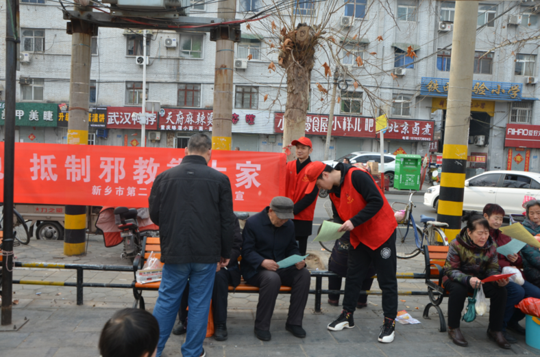 为了增强广大人民群众的反邪教意识,倡导崇尚科学的文明生活方式,2019年3月5日,新乡市第二强制隔离戒毒所组织多名学雷锋志愿者来到新乡市高村路进行“崇尚科学 远离邪教”宣传活动。