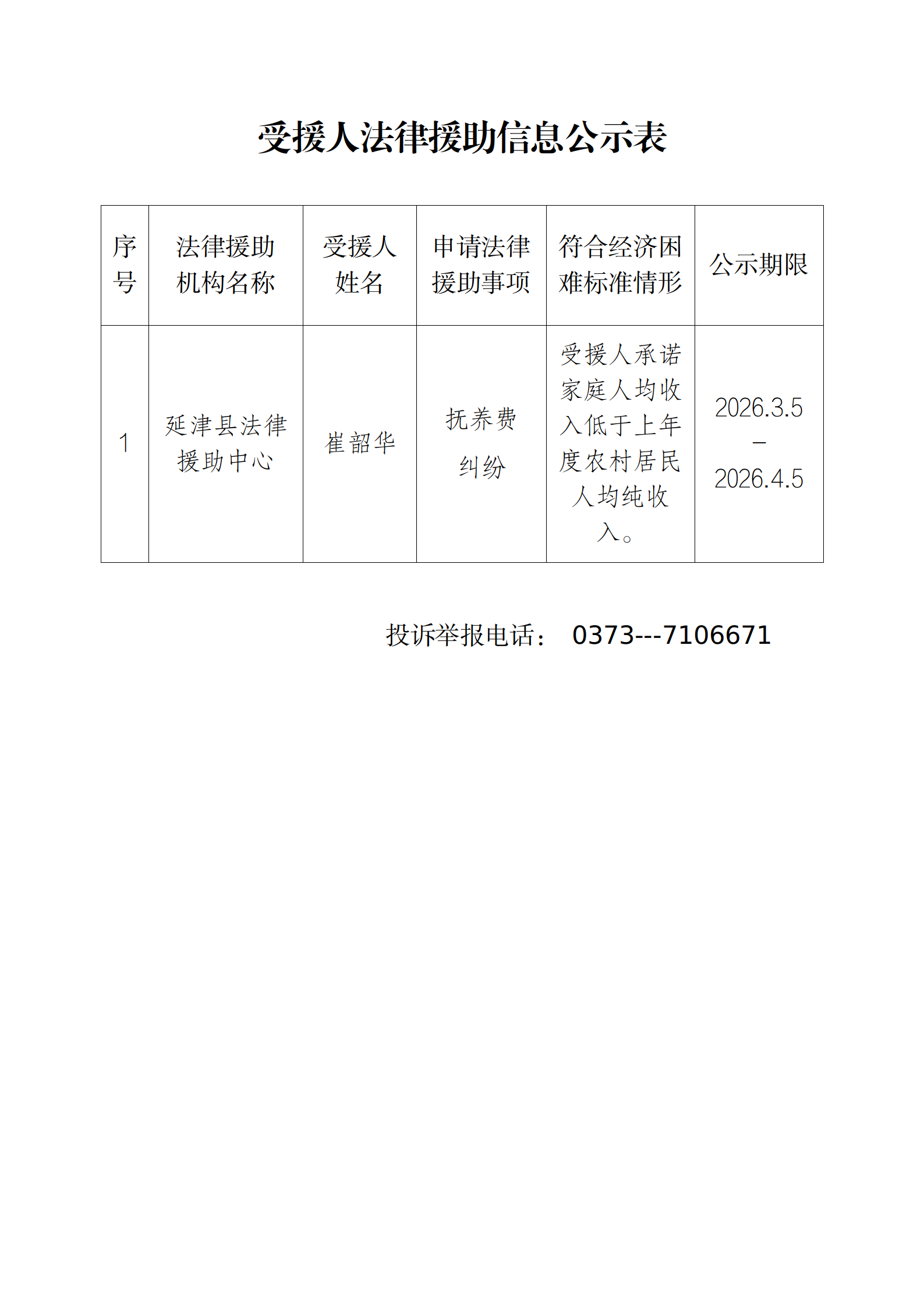 受援人法律援助信息公示20260305延津